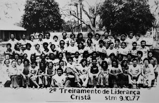 Participantes do segundo Treinamento de Lideranças Cristãs (2º TLC) realizado em Santarém, em 09 de outubro de 1977, no Centro de Formação Emaús. Abaixo a equipe da cozinha deste mesmo encontro.